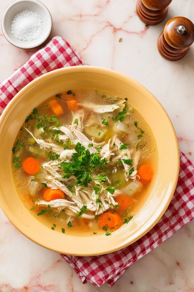 This recipe builds its flavor in layers: sautéed vegetables deepen the base, herbs infuse brightness, and gently poached chicken keeps the broth light yet nourishing. It’s the kind of chicken soup that’s healing and flavorful — perfect for cozy evenings or feeding loved ones.
